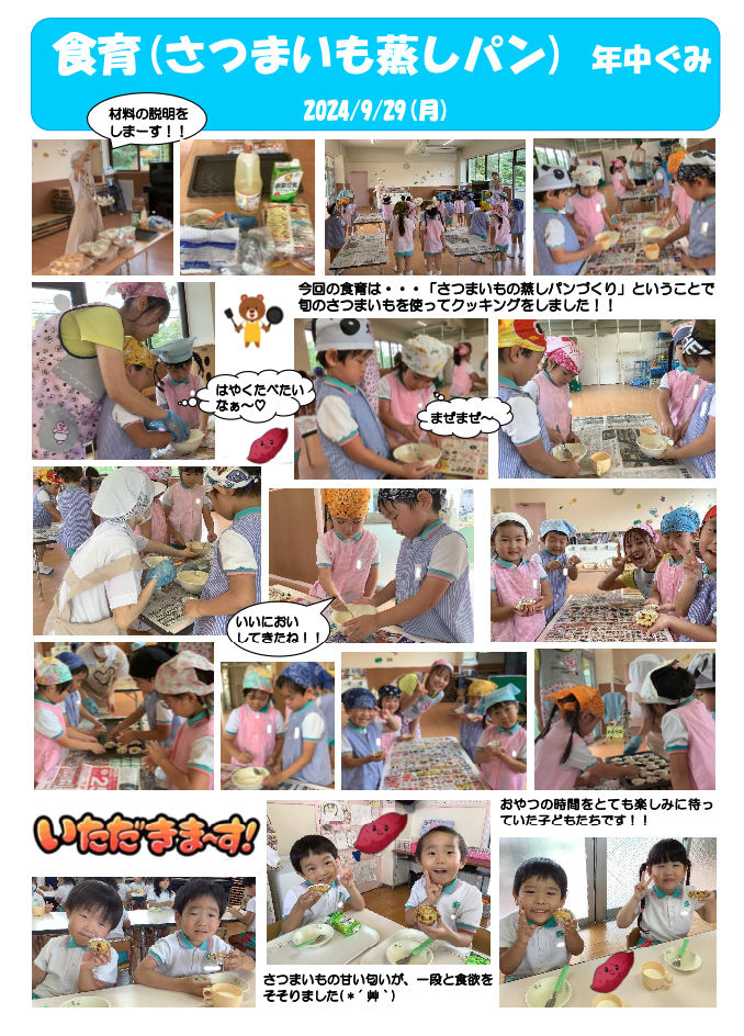年長中 食育(さつまいも蒸しパン) 見学について 園行事だより(在園児) 園庭開放 情報公開 求人情報 写真販売 学校法人嶋田学園 | 鶴山台明徳幼稚園|大阪府和泉市・高石市・泉大津市・堺市 ▲ TOPにもどる